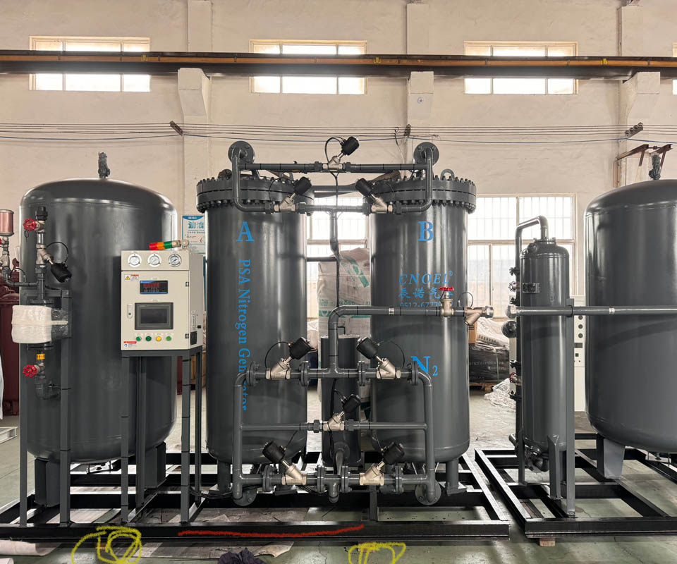 吸附劑是PSA制氮設(shè)備的核心部分。一般PSA制氮設(shè)備選擇的是碳分子篩,它吸附空氣中的氧氣、二氧化碳、水分等,而氮氣不能被吸附。